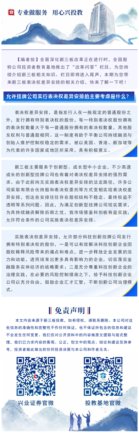 【投教·新三板】改革问答 | 第四十四期:允许挂牌公司实行表决权差异安排的主要考虑是什么?