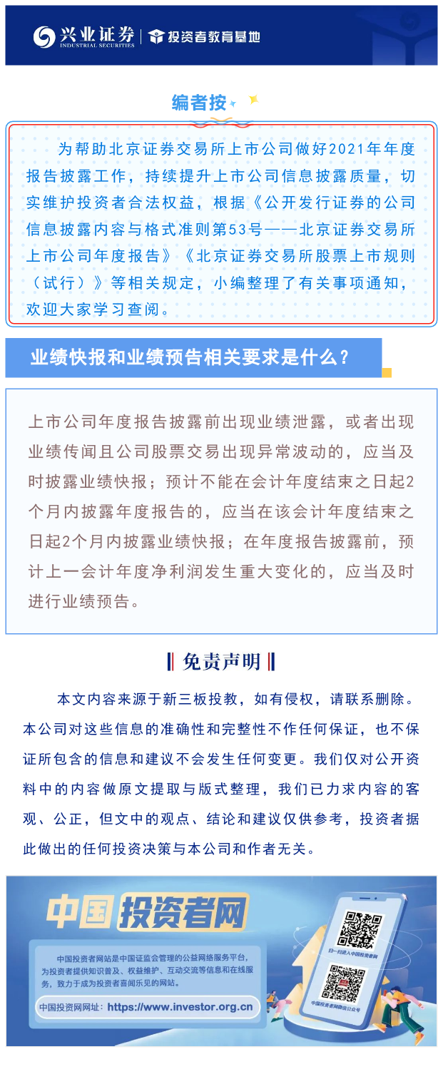 【兴·分享】上市公司年报系列 | 第六期:业绩快报和业绩预告相关要求是什么?