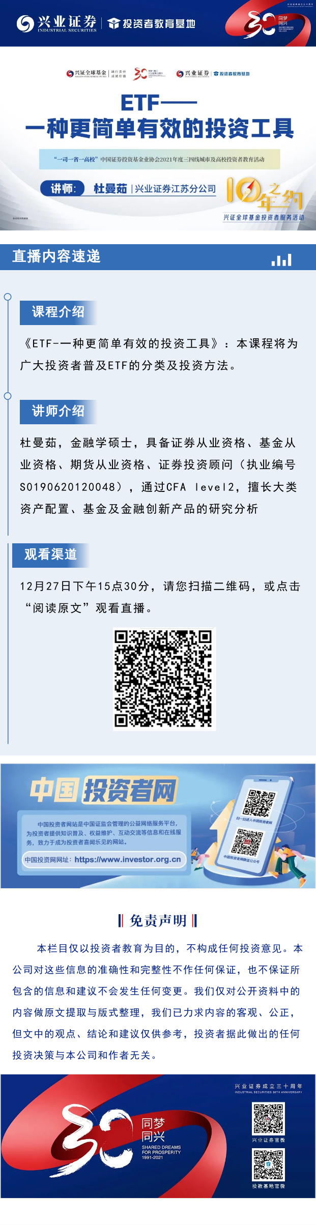 【兴·预告】15:30直播 | ETF-一种更简单有效的投资工具