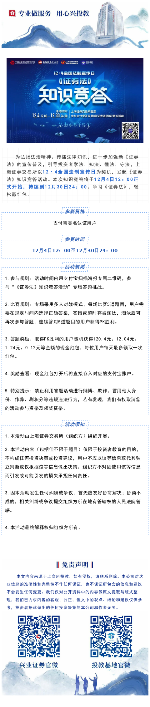 【法制宣传月】参与《证券法》知识有奖竞答!答对五题即可领取红包!
