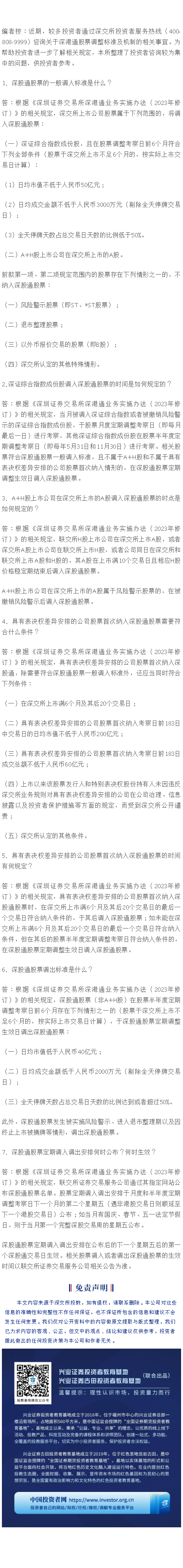 【兴·分享】深交所投教 | 投资者服务热线问答(2023年第4期)关于深港通股票调整标准及机制(上)
