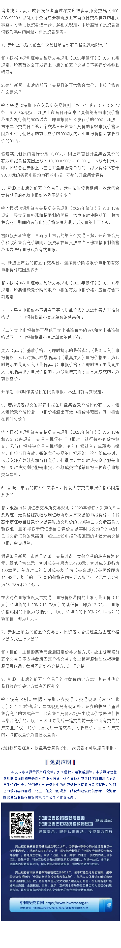 【兴·分享】深交所投教 | 投资者服务热线问答(2023年第8期)关于全面注册制新股上市首五日交易机制(上)