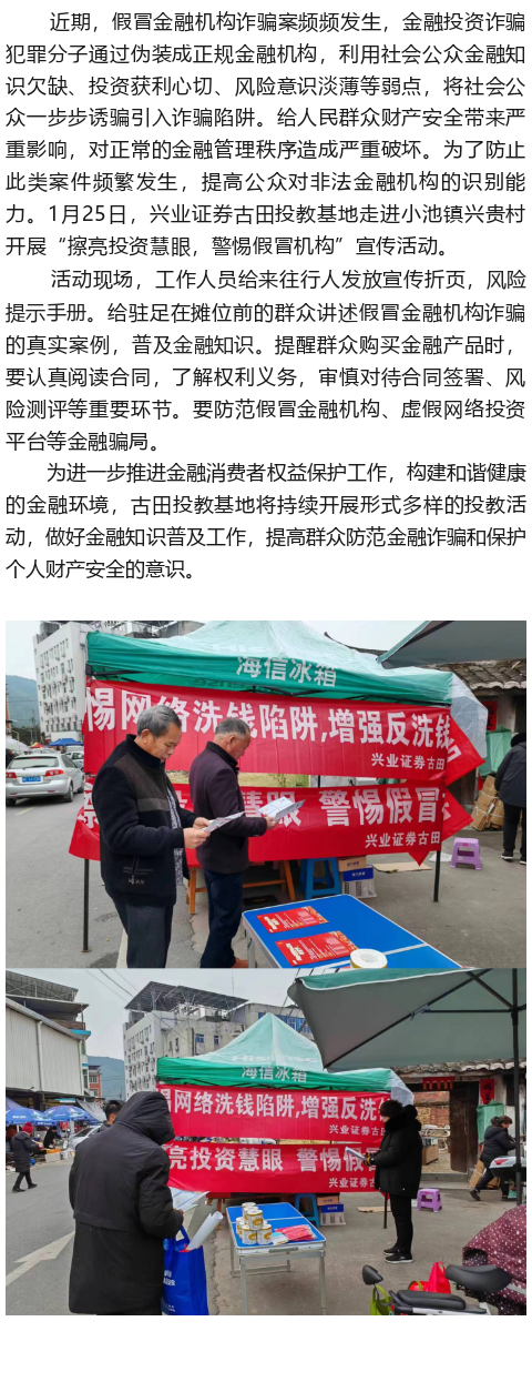 【兴·风采】兴业证券古田投教基地走进小池镇兴贵村开展“擦亮投资慧眼,警惕假冒机构”宣传活动