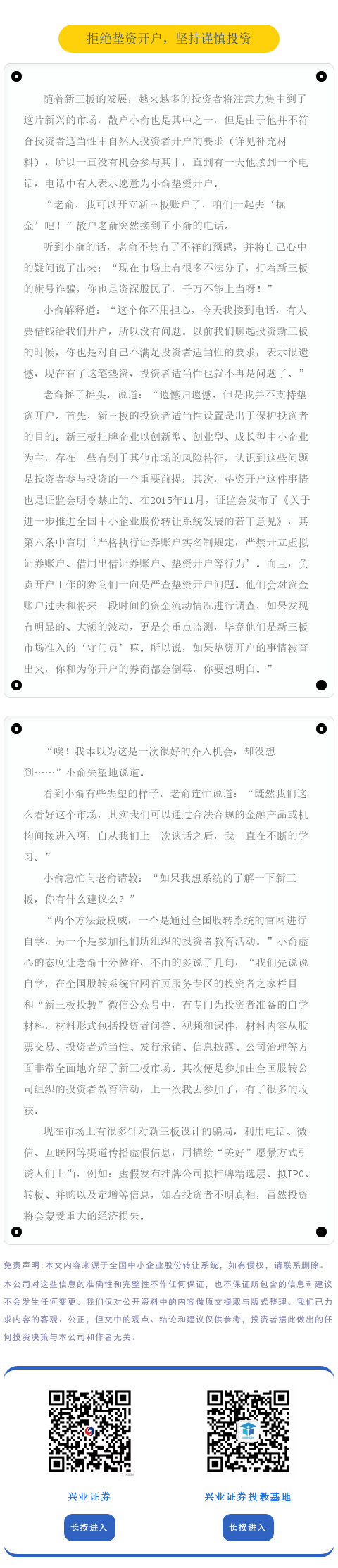 【投资·打非防非】案例分享 | 拒绝垫资开户,坚持谨慎投资 兴业证券投教基地 今天