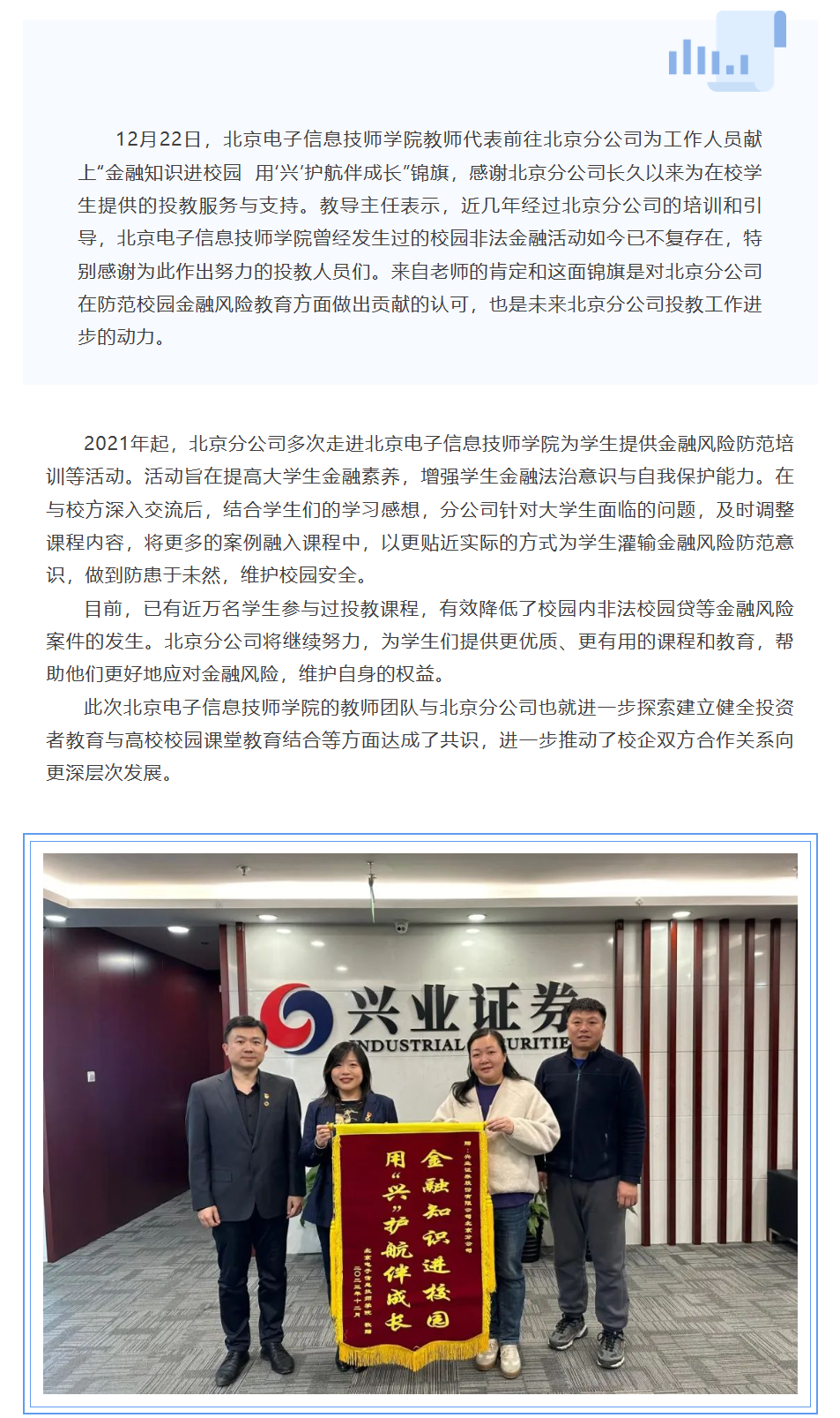 【兴·风采】北京分公司喜获北京电子信息技师学院教师团队投教锦旗与感谢