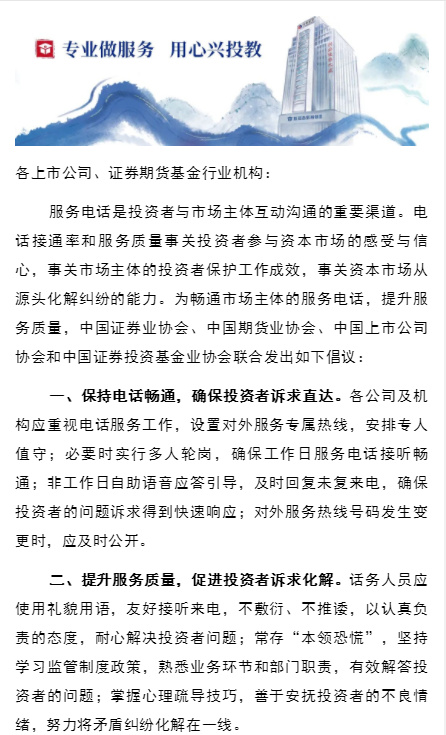 【投教分享】“畅通服务热线 搭建沟通桥梁”倡议书
