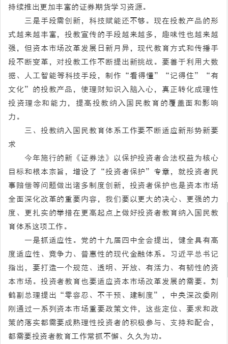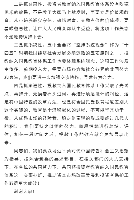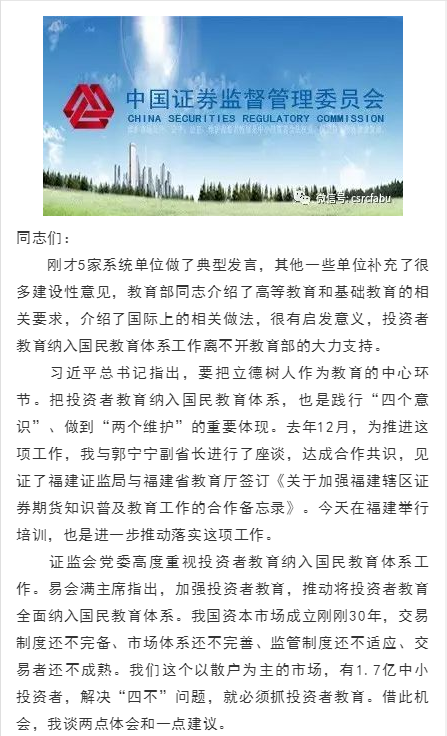 阎庆民副主席在投资者教育纳入国民教育体系工作培训上的讲话