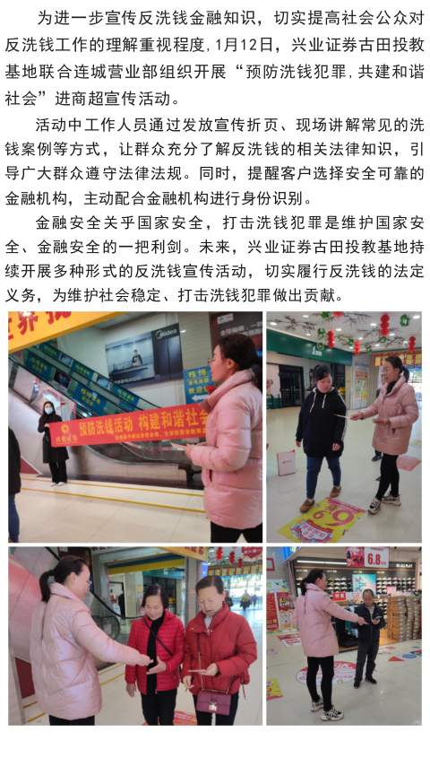 【兴·风采】兴业证券古田投教基地联合连城营业部组织开展“预防洗钱犯罪,共建和谐社会”进商超宣传活动