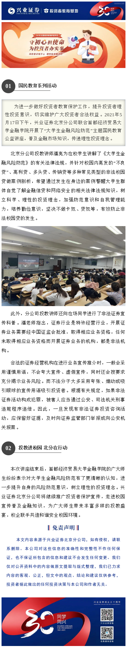 【兴·风采】兴业证券北京分公司走进首都经济贸易大学金融学院开展5.15国民教育系列活动