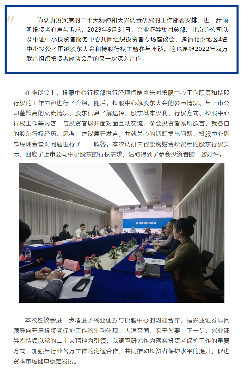 【兴·风采】兴业证券携手中证中小投资者服务中心共同举办投资者调研座谈会