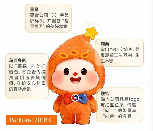 在造型设计上,“小兴星”同样巧妙地将中华传统文化与兴业证券品牌元素、企业文化理念体系做了结合,暗含丰富细节:一是紧扣公司“兴”字品牌标识。吉祥物头顶采用星星造型,既契合公司“兴”字的品牌标识,又饱含“福星高照”的美好寓意,同时额前刘海取自“兴”字笔画,寓意着三生万物、生生不息。二是整体造型融入财富吉祥的好意象。吉祥物身形宛如葫芦造型,葫芦谐音“福禄”,寄托着为投资者创造长期价值、守护安心财富的真挚愿景。三是融入品牌logo的核心视觉元素。吉祥物领结设计融入公司品牌logo与红蓝色系,传递“向上”的能量与“向善”的温暖,为形象增添时尚俏皮感的同时,强化品牌视觉记忆点,加深品牌专属联想。