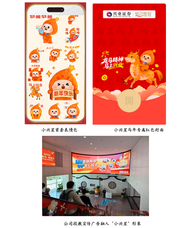 作为公司首位“品牌代言人”,小兴星在2月正式面世后,已陆续出现在兴业证券APP(优理宝)服务、户外大屏广告、企业文创产品和投教等丰富的场景中,后续还将探索多元场景,让“有温度的金融”从理念变为可见、可感、可互动的陪伴体验。