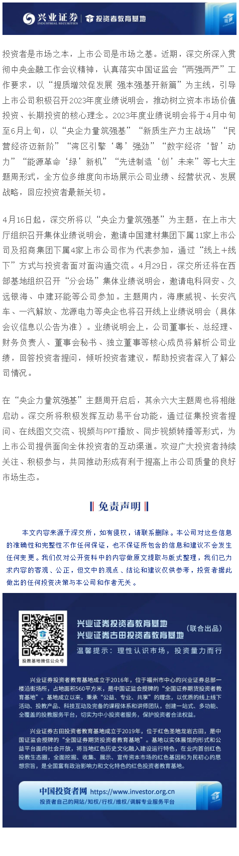 【兴·分享】2023年度深市业绩说明会主题周即将启动 围绕新质生产力等主题推动资本市场强本强基