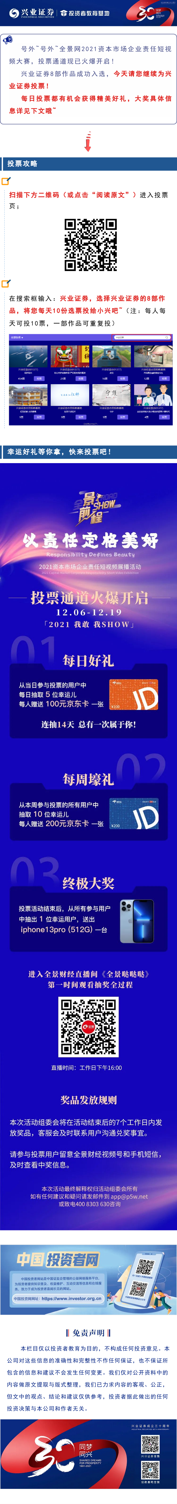 【兴·投票】2021资本市场企业责任短视频大赛火热进行中!今天请您继续为兴业证券投票!