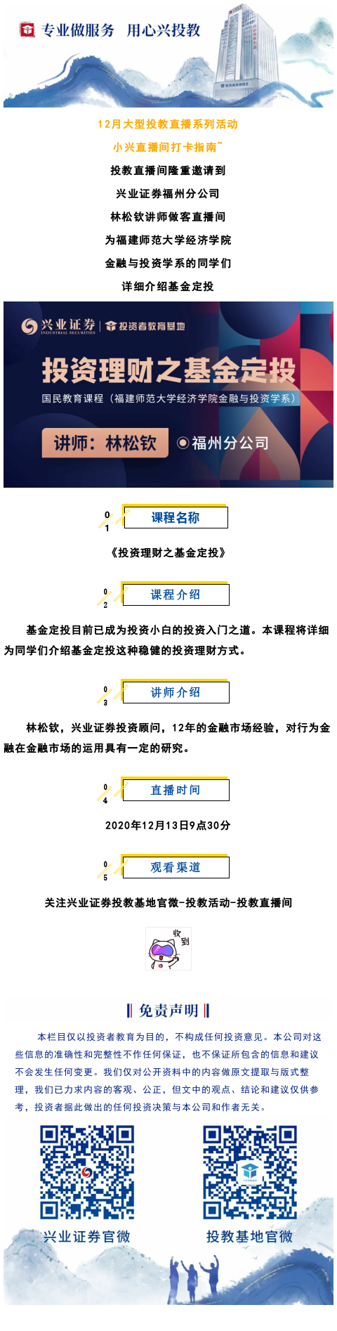 【直播预告】国民教育课程——《投资理财之基金定投》,9点30分准时上线!