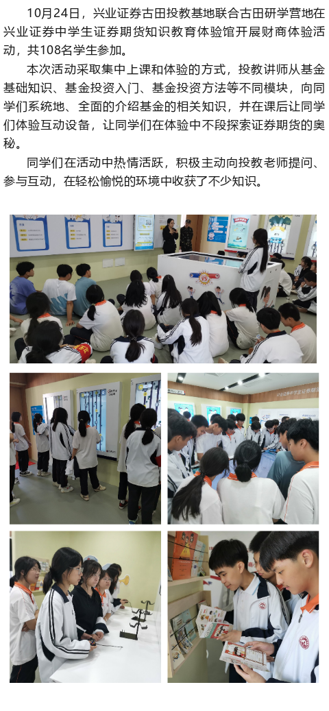 【兴·风采】兴业证券古田投教基地在兴业证券中学生证券期货知识教育体验馆开展财商体验活动