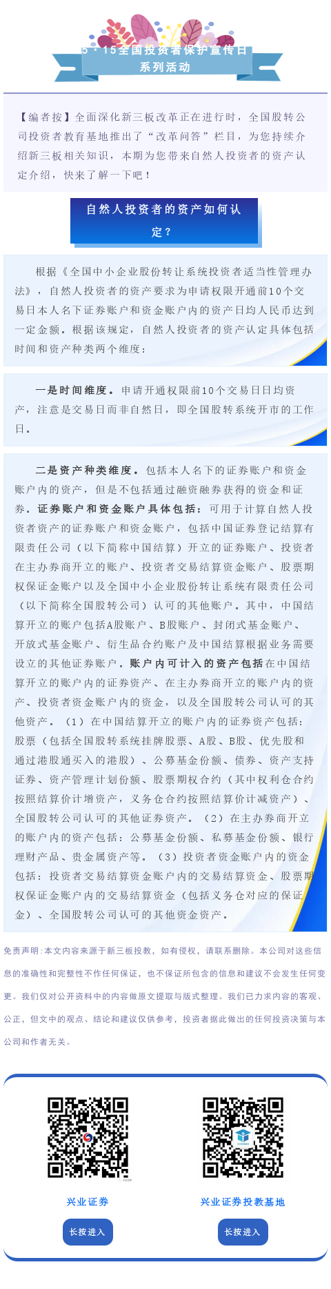 【投教·新三板新风】改革问答 | 第十五期:自然人投资者的资产如何认定?