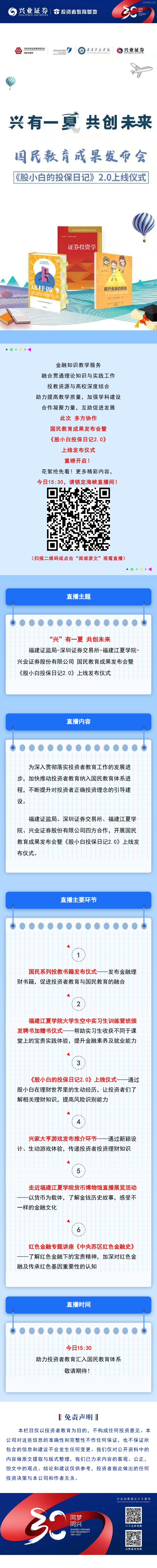 【兴·预告】兴业证券联合多方开展国民教育成果发布会暨《股小白投保日记2.0》上线发布仪式将于15:30海峡直播间重磅上映!