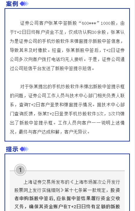【投教·案例课堂】“12386”中国证监会服务热线案例——中签需重视,资金要留足