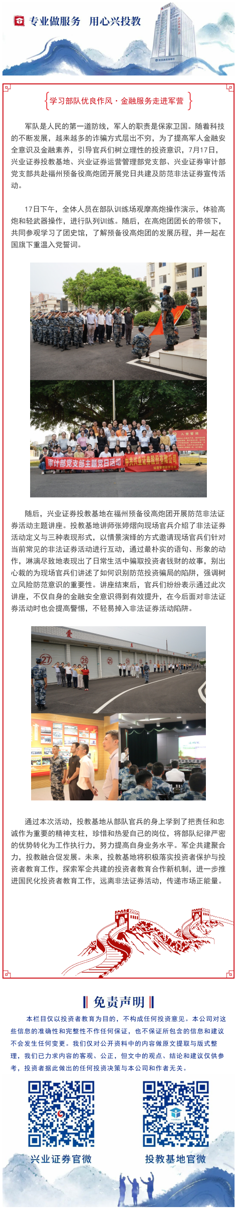 【投教·线下活动】“学习部队优良作风·金融服务走进军营” --投教基地赴福州预备役高炮团开展投教活动