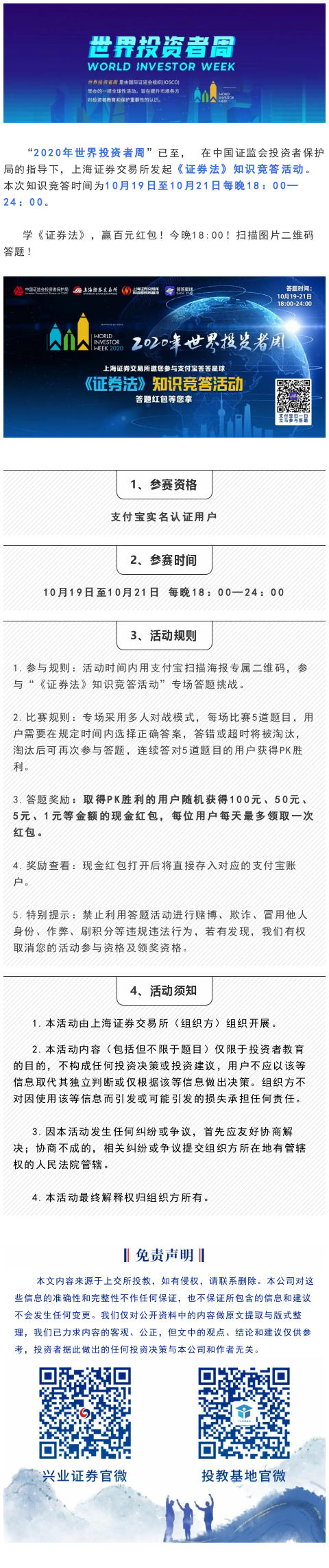 【WIW专栏】知识竞答|《证券法》知识竞答活动今晚开启!PK获胜还能领取红包!