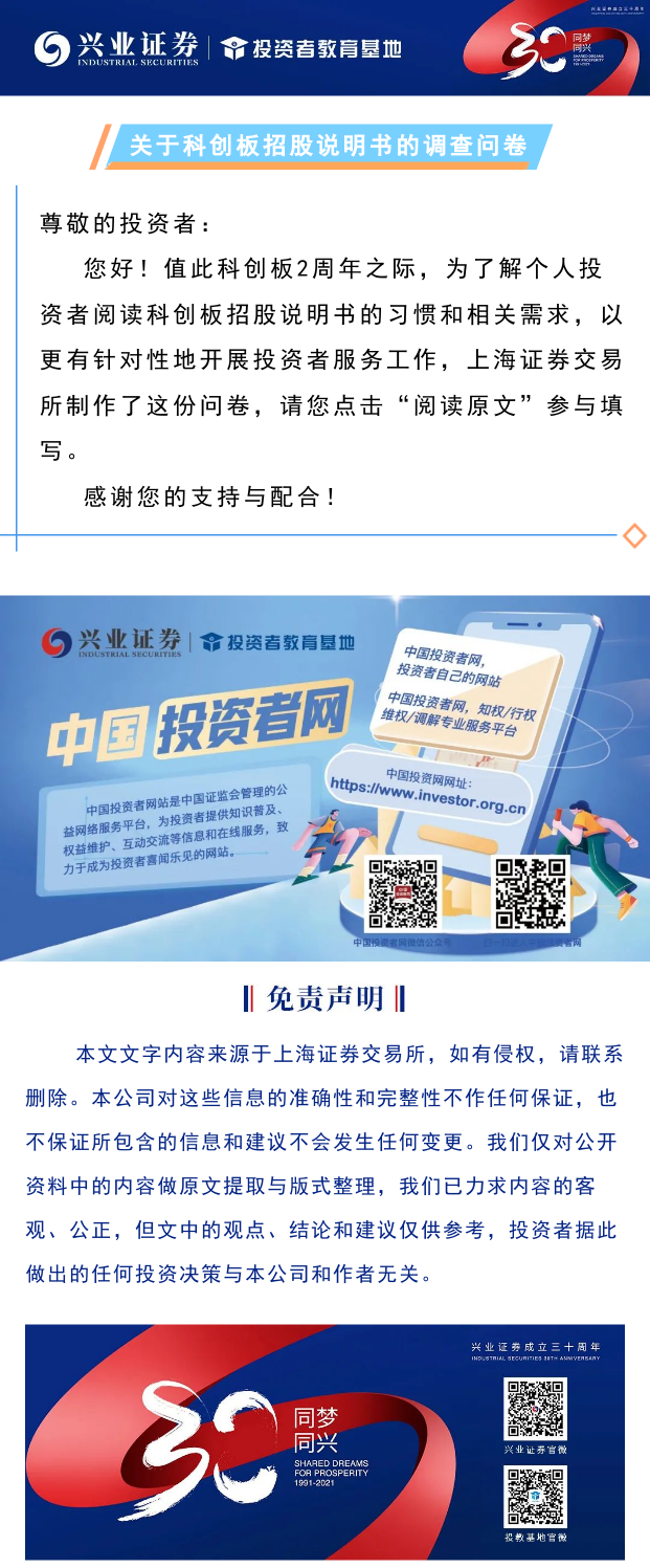 【兴·问卷】邀您填写关于科创板招股说明书的个人投资者调查问卷
