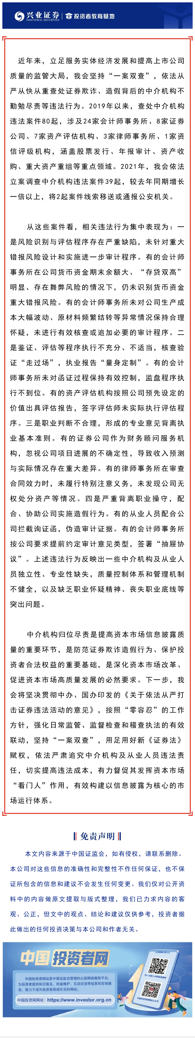 【兴·分享】证监会依法从严查处证券中介机构违法行为