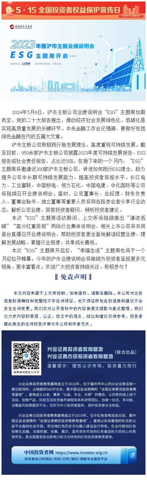 【兴·分享】与高质量发展同行 | 沪市主板公司业绩说明会“ESG”主题周正式开启