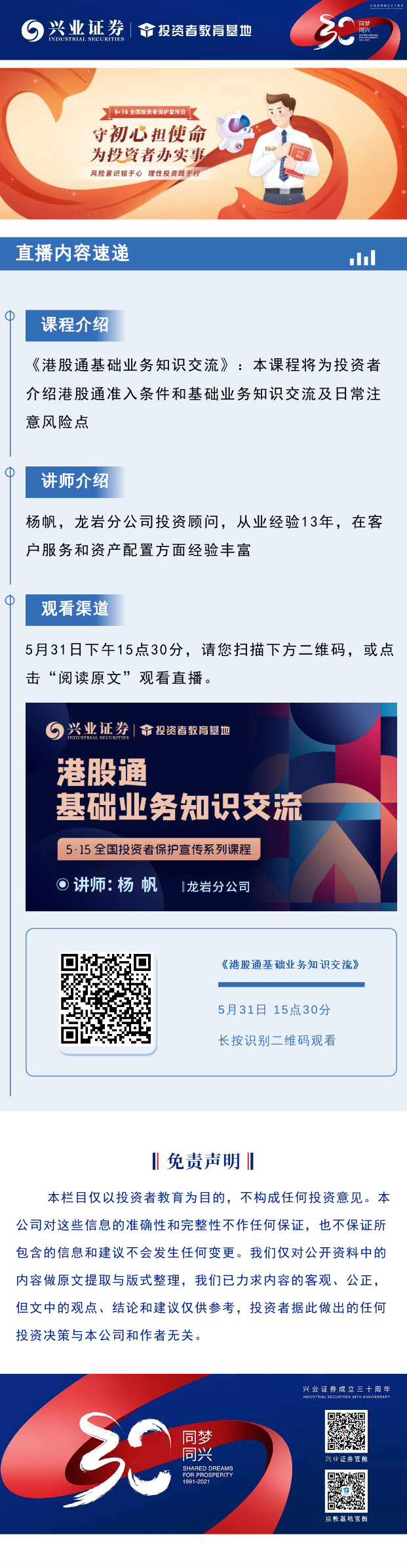 【兴·预告】15:30直播 | 港股通基础业务知识交流