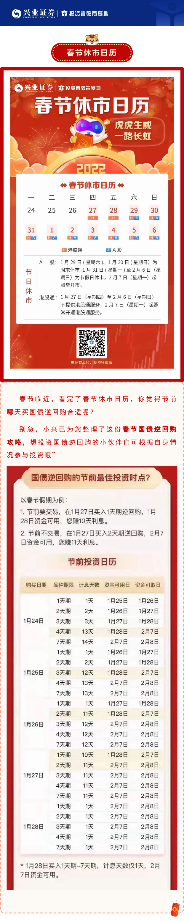 春节休市日历来啦!这份春节国债逆回购攻略值得收藏!