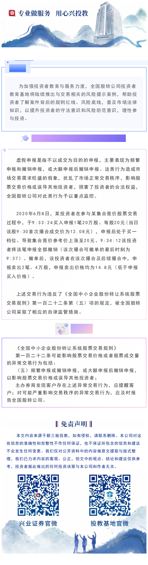【新三板】风险提示案例 | 某投资者虚假申报并反向交易违规案例
