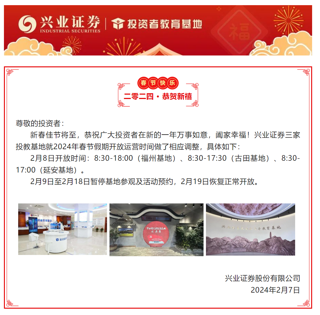 【兴·公告】2024年兴业证券投教基地春节开放安排