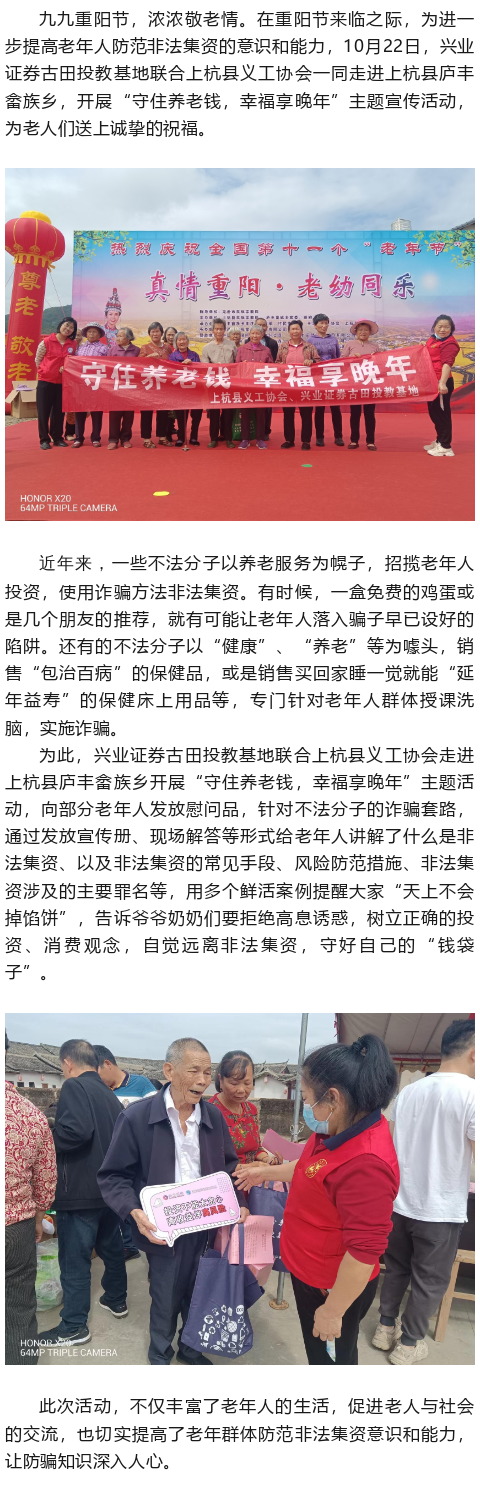 【兴·风采】兴业证券古田投教基地联合上杭义工协会走进庐丰畲族乡开展“守住养老钱 幸福享晚年”宣传活动
