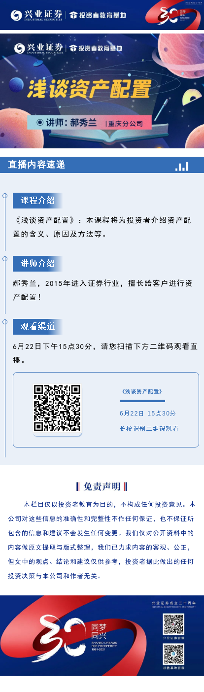 【兴·预告】15:30直播 | 浅谈资产配置