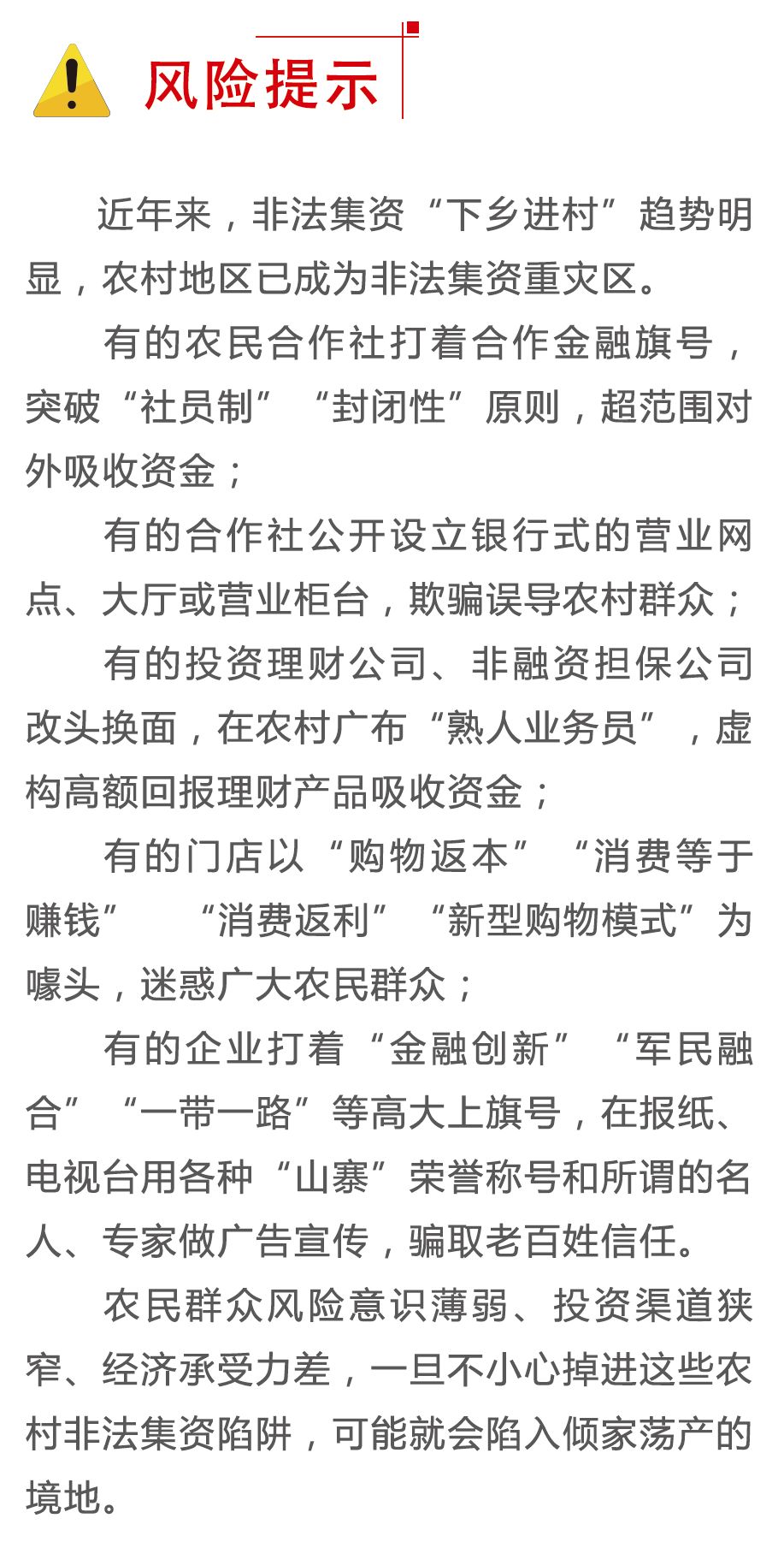 免责声明:本文内容来源于福建打击处置非法集资,版权归原著者所有,如有侵权请联系删除。本公司对这些信息的准确性和完整性不作任何保证,也不保证所包含的信息和建议不会发生任何变更。我们仅对公开资料中的内容做原文提取与版式整理,我们已力求内容的客观、公正,但文中的观点、结论和建议仅供参考,投资者据此做出的任何投资决策与本公司和作者无关。