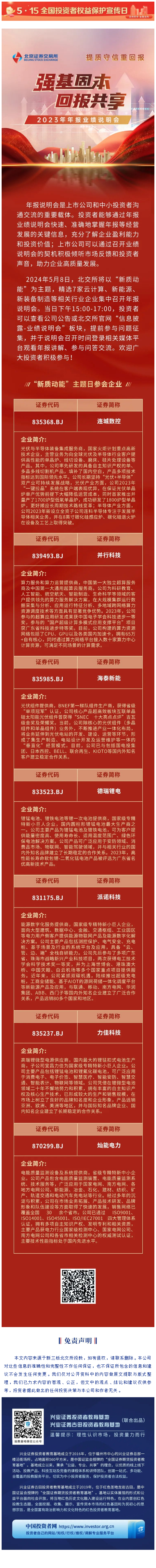 【兴·分享】“提质守信重回报”——北交所上市公司2023年年报业绩说明会“新质动能”主题日预览