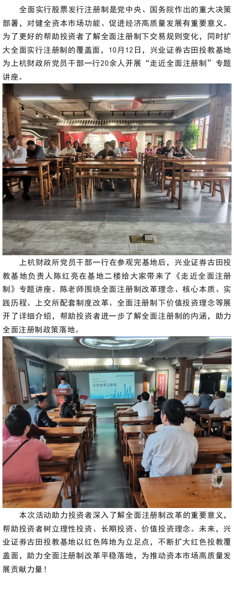 【兴·风采】兴业证券古田投教基地为上杭财政所党员干部开展“走近全面注册制”专题讲座