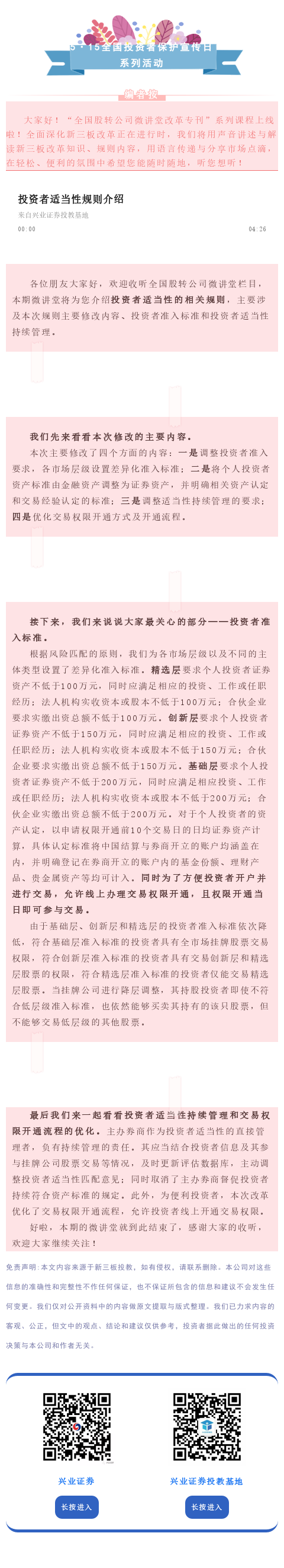 【投教·新三板新风】 温故知新 | 微讲堂改革专刊之投资者适当性规则介绍