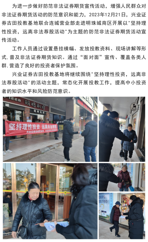 【兴·风采】兴业证券古田投教基地联合连城营业部走进明珠城商区开展"坚持理性投资,远离非法荐股活动"