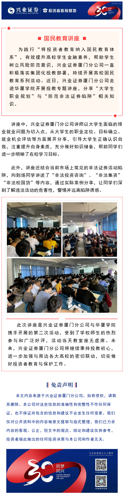 【兴·风采】兴业证券厦门分公司走进华厦学院开展投资者教育活动