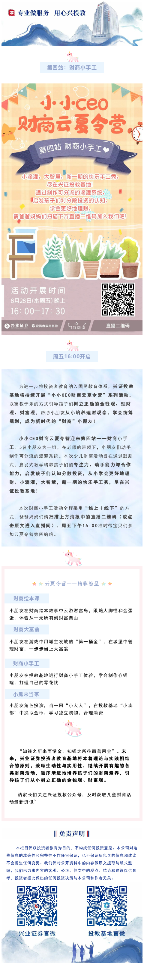 【少儿财商】小小CEO财商云夏令营第四站即将开启