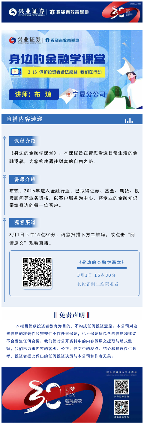 【兴·直播】身边的金融学课堂,15:30正式开课!