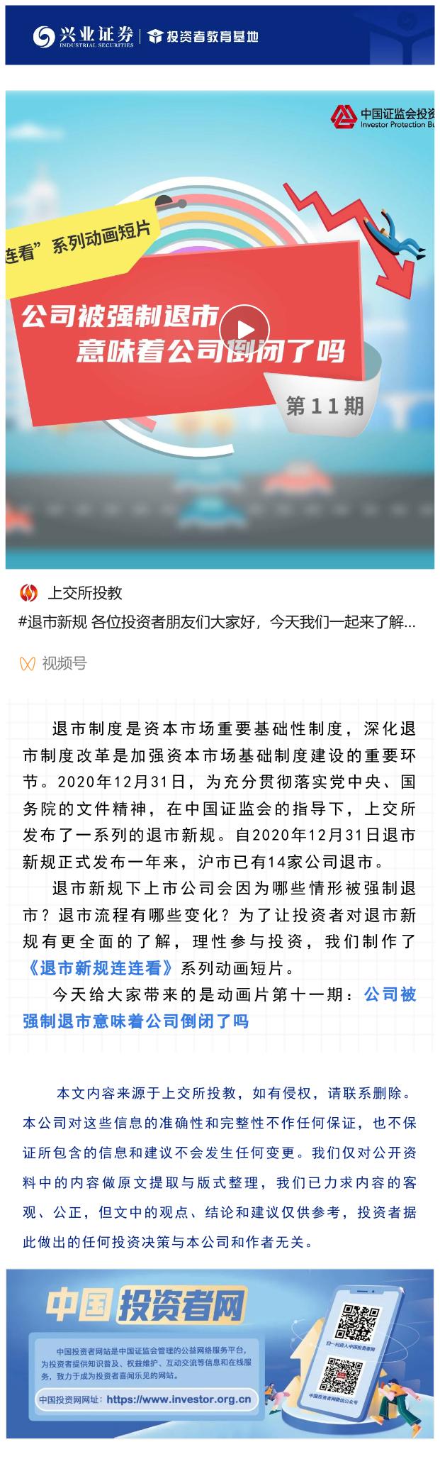 【兴·分享】《退市新规连连看》第十一期:公司被强制退市意味着公司倒闭了吗