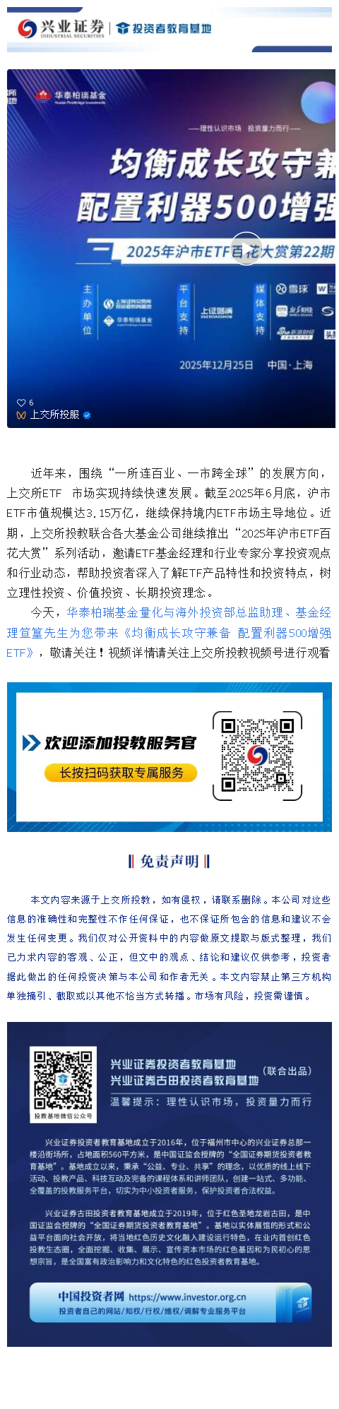 【兴·分享】活动回顾 | 2025年沪市ETF百花大赏第二十二期:均衡成长攻守兼备 配置利器500增强ETF(2026-02-06 17:23:07.0)