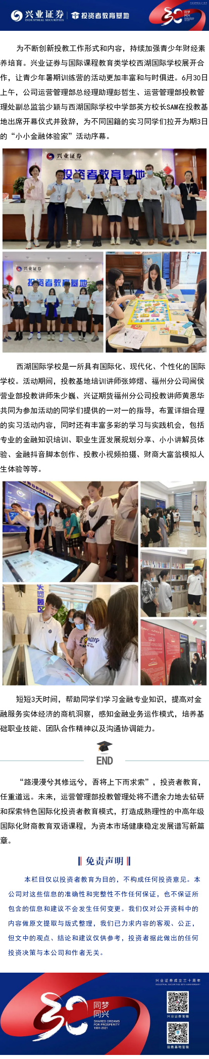 【兴·风采】兴业证券投教工作深入国际校园,倍受外籍同学欢迎 ——与西湖国际学校开展“小小金融体验家”活动