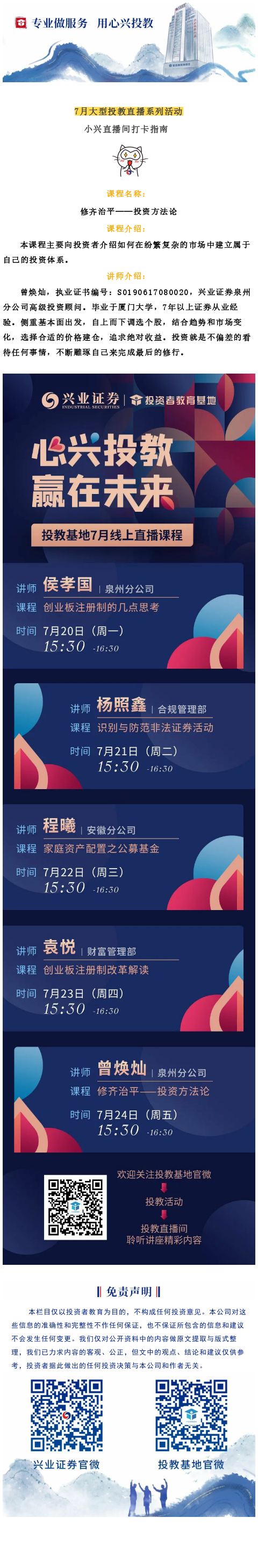 【兴预告】今日直播放送 | 修齐治平——投资方法论