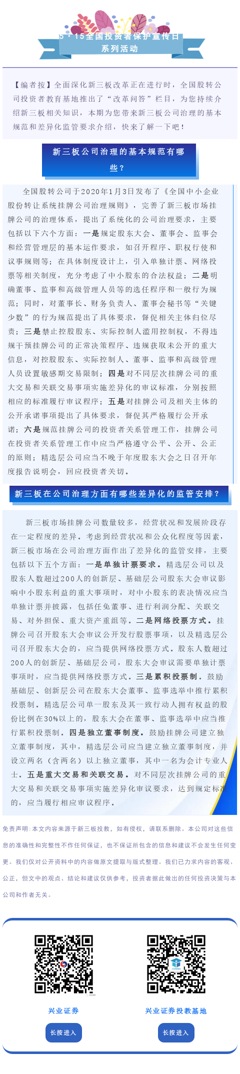 【投教·新三板新风】改革问答 | 第十二期:新三板公司治理的基本规范有哪些?在公司治理方面有哪些差异化的监管安排?