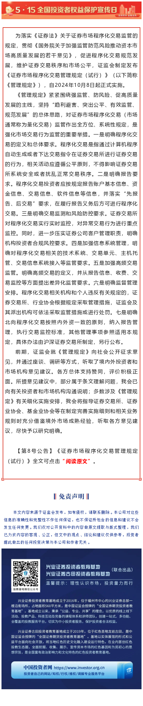 【兴·分享】证监会发布《证券市场程序化交易管理规定(试行)》