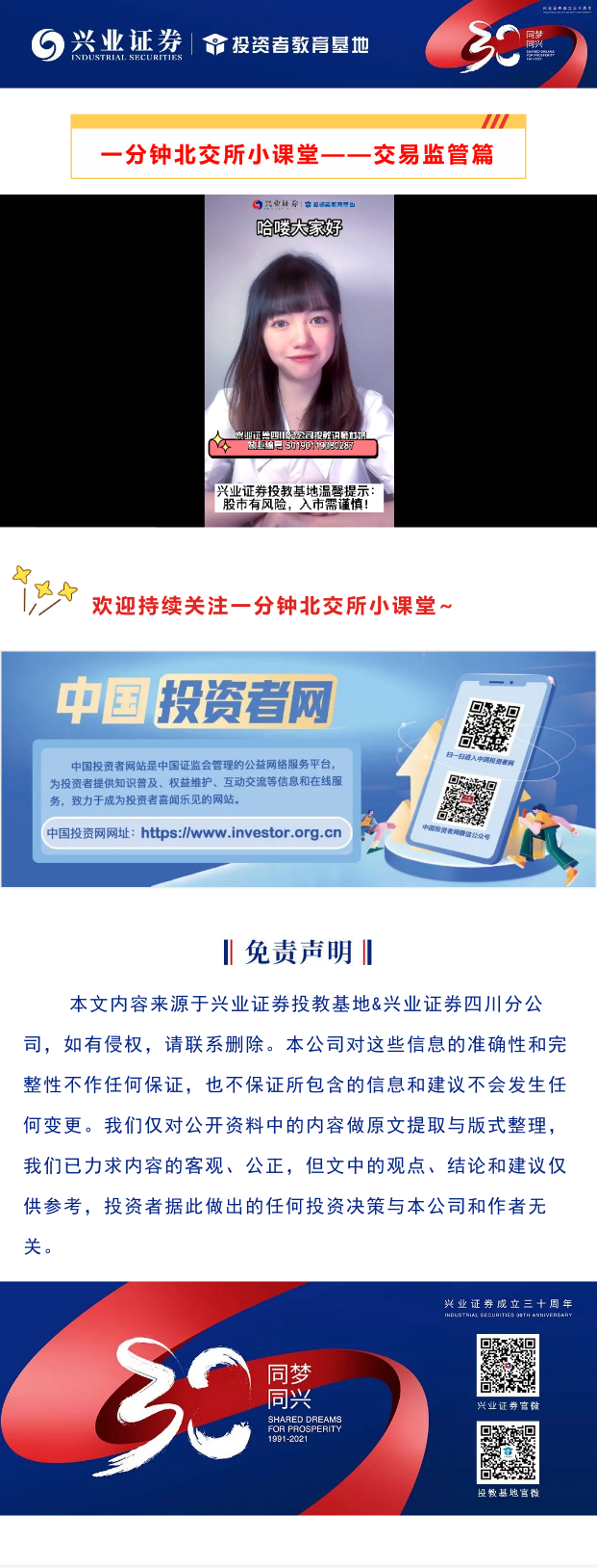 【兴·原创】一分钟北交所小课堂 | 北交所交易监管规则(下)