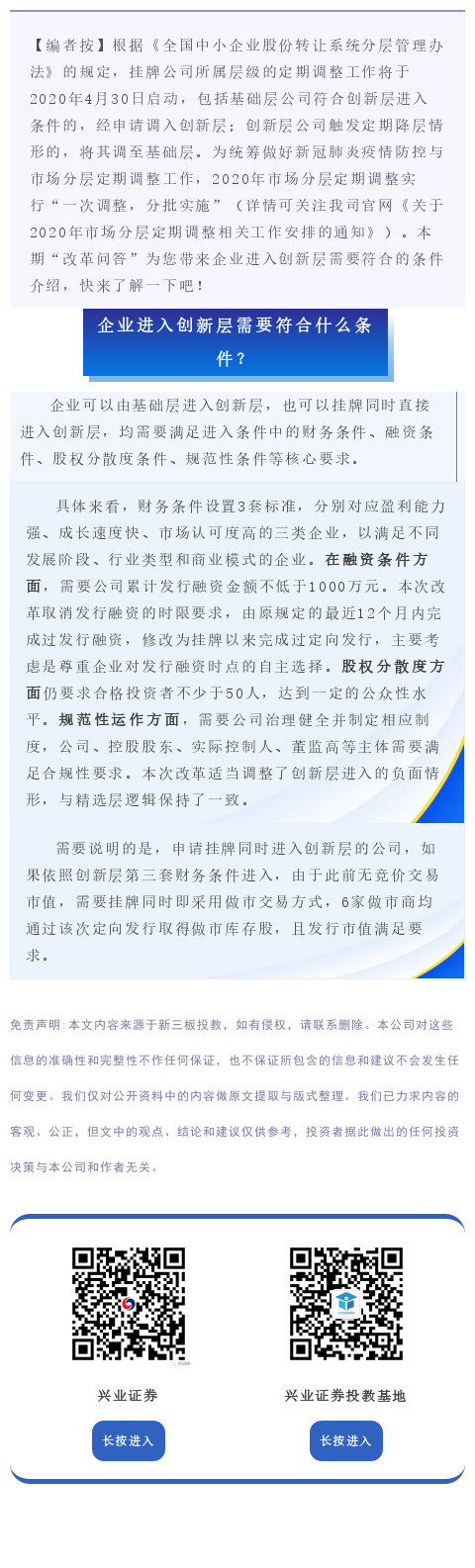【投教·新三板新风】改革问答 | 第七期:企业进入创新层需要符合什么条件?